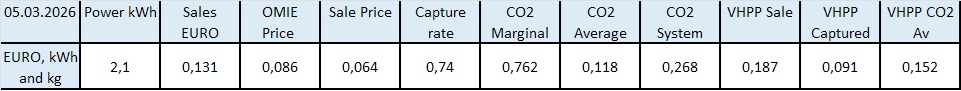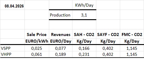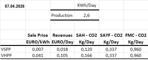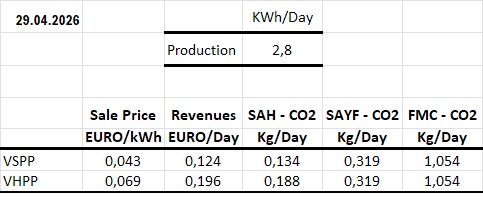 Last day’s summary – for 1 kW installed capacity: